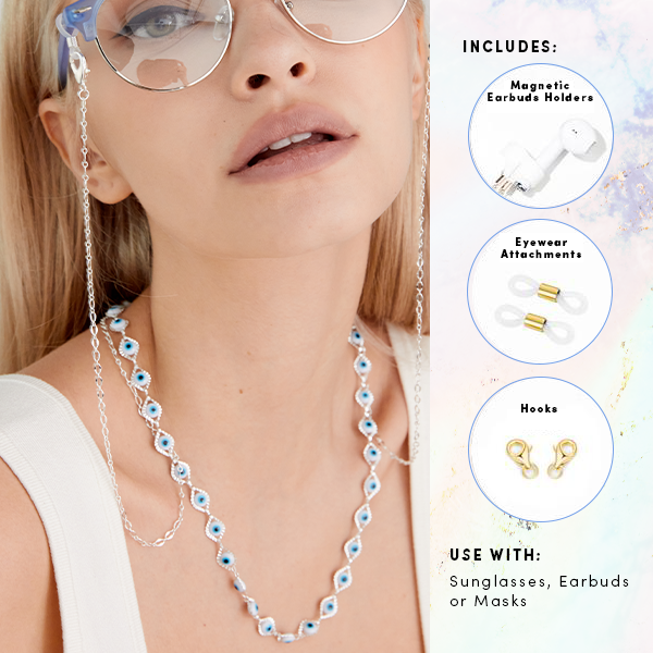 Upgrade your accessory game with our versatile eyewear chains. These chic chains are designed to effortlessly complement your sunglasses, glasses, masks, and earbuds, offering both style and functionality.