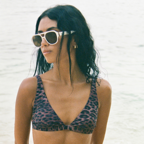 A super soft, luxe fabric bikini top with adjustable shoulder straps at the side and hook option at the band. Adjust for your own coverage.
